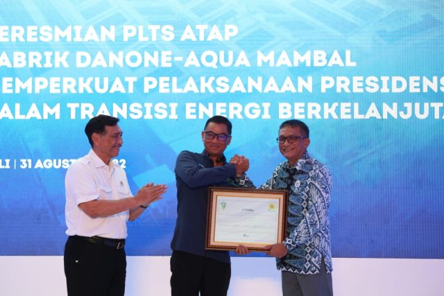Selain itu, Danone membangun pembangkit listrik tenaga surya (PLTS) atap di salah satu pabrik Aqua di Mambal, Kabupaten Badung, Bali dengan kapasitas 704,16 kWp untuk memenuhi kebutuhan energi terbarukannya.