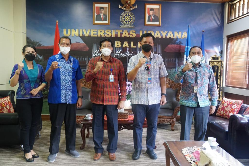 Rektor Universitas Udayana Prof. I Nyoman Gde Antara didampingi juru bicara Unud menerima audiensi Kepala BNN Provinsi Bali beserta jajaran bertempat di Gedung Rektorat Kampus Jimbaran, Selasa (12/10/2021).