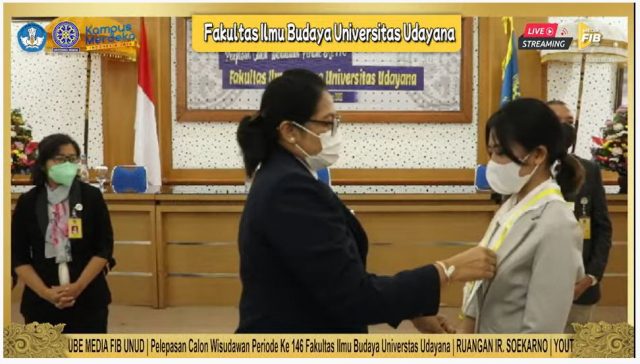 Fakultas Ilmu Budaya menggelar acara pelepasan calon wisudawan (yudisium) pada Kamis, 17 Februari 2022. Acara pelepasan calon wisudawan kali ini dilaksanakan secara hibrid, perwakilan calon wisudawan hadir di Ruang Soekarno, sementara peserta lain mengikuti melalui daring dan kanal youtube FIB Unud.